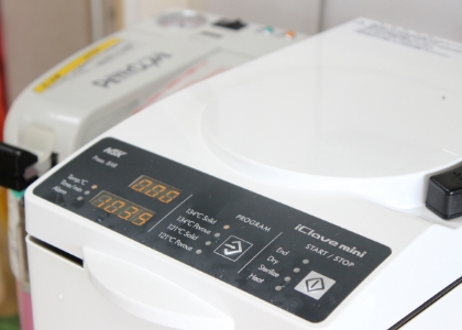 歯を削る器具用の滅菌器を導入しています。
